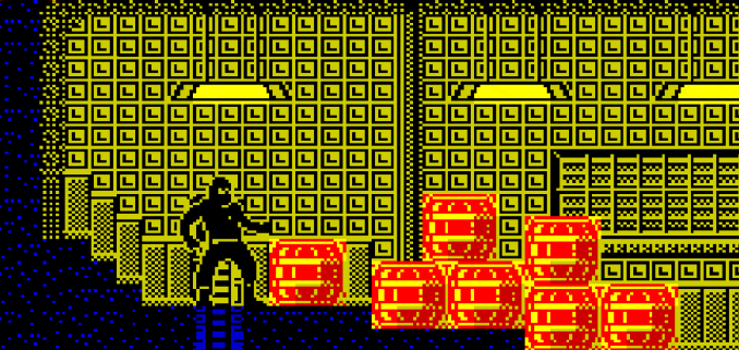 Saboteur! was actually a pet project of mine at home. I’d spoken to Durell and they’d asked me to write a game called Chicken – a bit like a Game & Watch game. So I started learning assembly language while writing Chicken, but the project was cancelled and I was asked to work on Death Pit instead. Death Pit was virtually finished, but I wasn’t entirely happy with it.